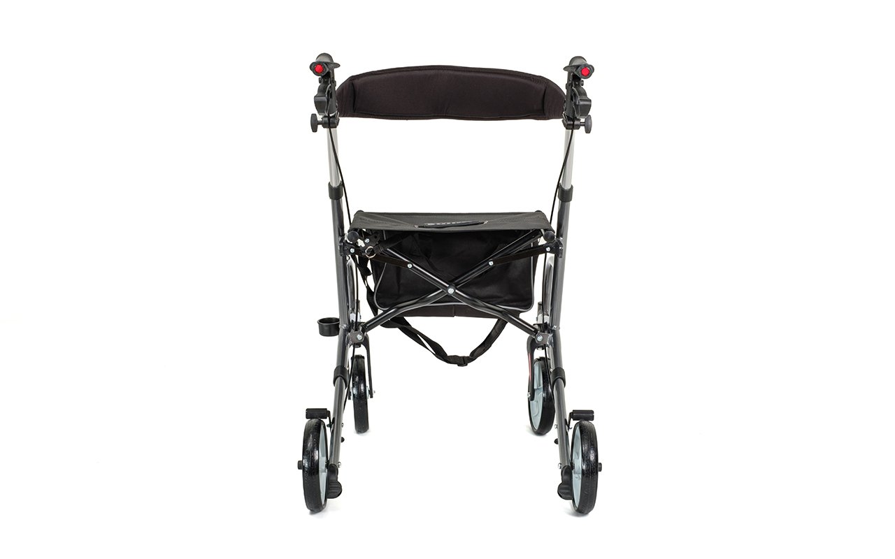 Fabricado em alumínio leve e resistente, este andarilho ergonómico possui punhos reguláveis em altura, rodas anti-furo de 20,3 cm e um sistema de travagem manual para maior controlo e segurança. Além disso, conta com um assento confortável em nylon, um encosto ajustável e uma bolsa de transporte, tornando-o ideal para o dia a dia.